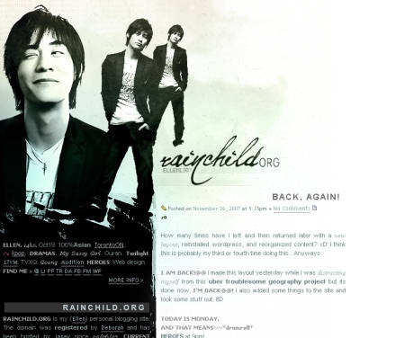 In 2003, I became a webmaster, running several hobby sites (to discover Asian music, to learn PHP, etc) and fan sites. I maintained a personal blog too. I’ve consolidated my blogging history here.